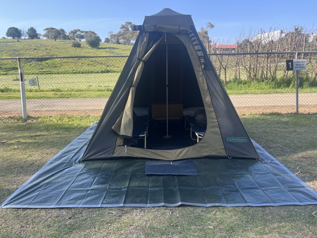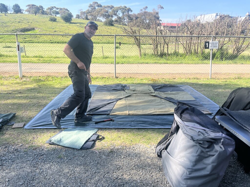 We stopped in Williamstown and got some overpriced sandwiches. Anyway, we will be better prepared tomorrow, making some sandwiches the day before or in the morning. We have a fridge and lots of food with us. Around 15:00, we reached Burra. Here is a Camper & Caravan place, so we could set up the tent here. It was easier than I thought. Andrew is just a very practical person.