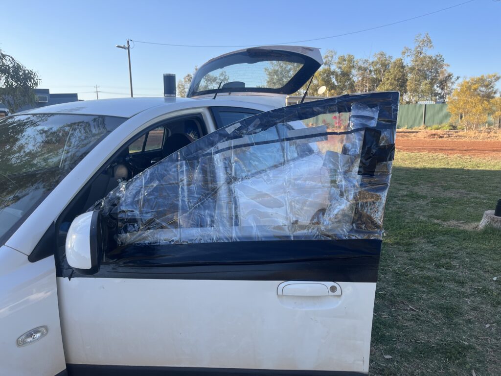 I woke up Andrew, showing him the disaster. We were wondering if anything got stolen, but it wasn’t. He just grabbed the two bags that were in front of the seat. Probably, I just came out at the right moment, so the thief had to escape. Our neighbor came down from his big truck because he heard us. He said that the thief was already at 01:30 at his truck, trying to open the door. Then he was chasing the guy, but out of the sudden he disappeared. We don’t know how he came into the camping place, as there is a high wall with a razor fence around it. Later, we found a cardboard box from our neighbour on the ground. It looked like these with wine inside. Obviously, he was looking for alcohol. Andrew saw the owner of the place and was running towards him. He said that they have all on video. There are cameras on the property and enough light from lanterns at night. He knows who he is, and that was not the first time he came in. He was also in the room of one of the staff members. The police don’t do anything about it. Somehow, there are different laws for Aboriginal people. They are hardly getting punished by the law, which creates an uncomfortable situation. But this is a longer story here in Australia.