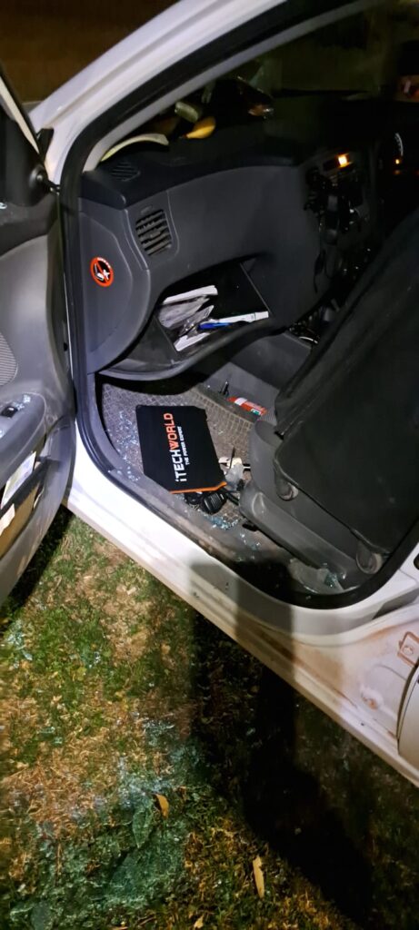 It was 02:45 when I woke and had to leave the tent for a pee. The car was just in front of the tent. I saw my backpack beside the car and another bag. Stuff was lying around the side door of the car. I didn’t get the first moment what had happened. Maybe I forgot last evening to put my backpack in the car before I went to sleep? But what is the other bag doing there? Anyway, I was tired and went for a pee. When I came back, I saw the full damage. The side window was broken. The car was still locked. My suitcase was on the passenger seat for the night. Then I woke up, my wallet with debit cards and money was in the backpack, and so was my passport. I checked my backpack expecting the worst, but my wallet with cards and money as well as my passport was in there. This was at least a relief.