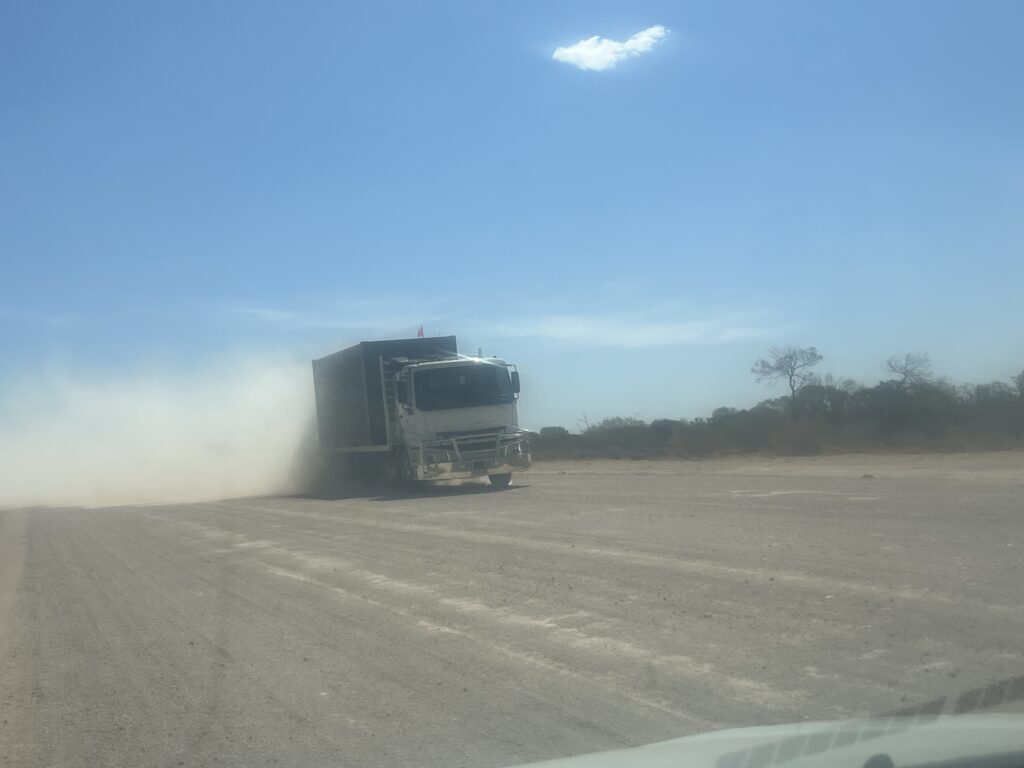 It was a long day, more than 500 km on a dirt road. 100 km before Laverton, we saw a car with a caravan standing on the road. They had a flat tyre in their 4-wheel drive and just got air in with a compressor. Andrew gave them a few tips and asked them about their trip. They didn’t even know that there were more than 800 km of dirt roads. Also, the caravan was very old and not in good condition. Andrew offered them an emergency can of tyre air inflater to fix it temporarily. The can was AUD30, but they didn’t have cash, so the lady gave him 150 Hong Kong dollars, which is equivalent to AUD30. Andrew recommended that they should change the tyre; they had a spare one. He also recommended turning and not continuing to drive to Ayers Rock. They were not well-informed and prepared for the outback.
