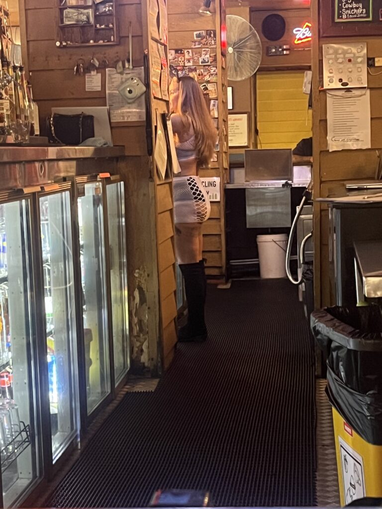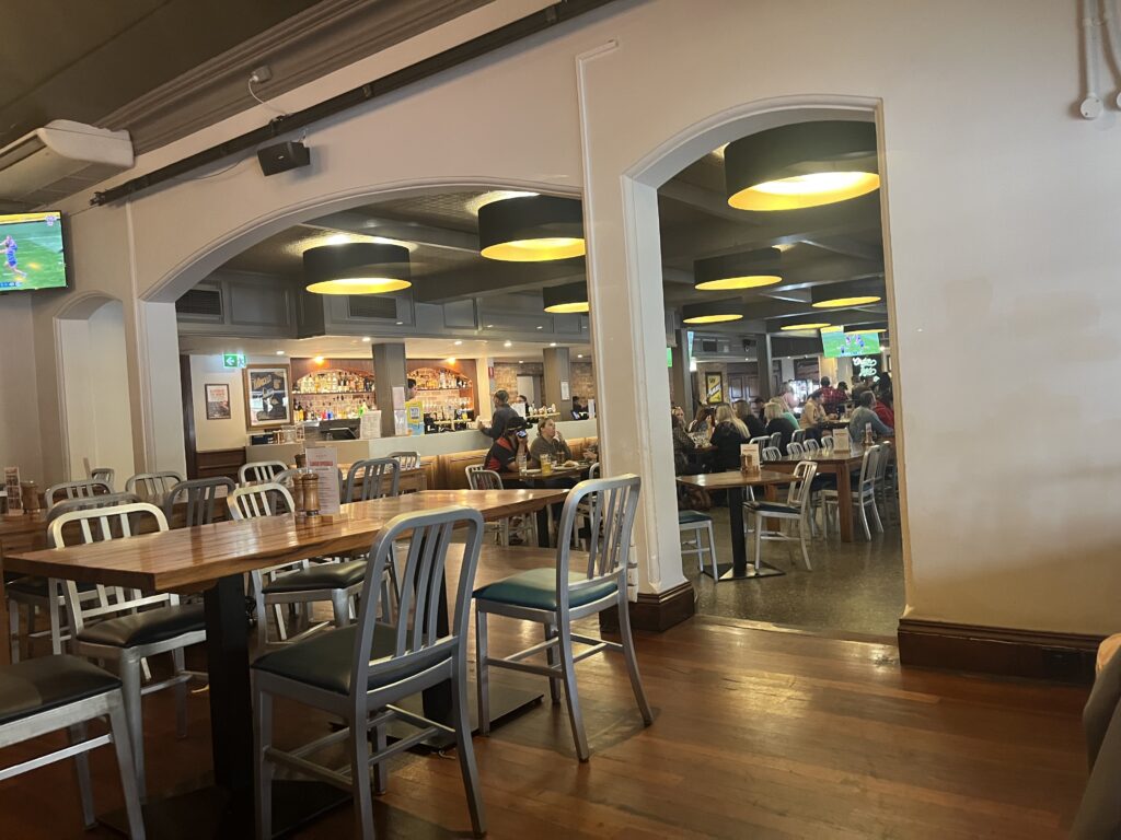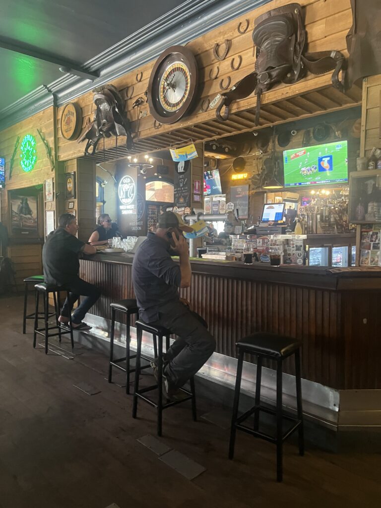 Early afternoon, I left with Andrew for lunch. We drove to the Exchange Hotel, kind of a Western Saloon and Restaurant, where the bartenders are Skimpies. “Skimpies” in Australia are female bartenders who serve drinks while wearing lingerie or bikinis, a service primarily found in country and mining town pubs.