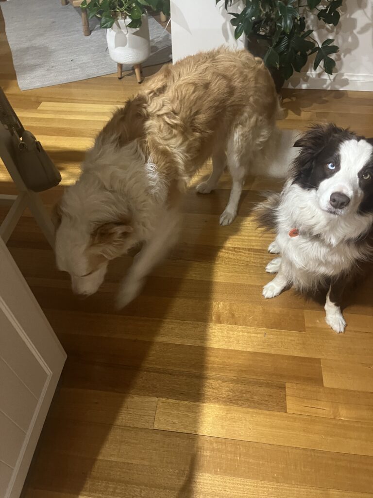 It was refreshing to sleep in a proper bed. It was dark and quiet in the night. I woke up at 07:00 and had time to read and write. No rush today reaching somewhere. It was raining this morning. The forecast said it would be raining today and tomorrow, on Monday. It would be a quiet day, not really much to do. There would be a horse race today, but it’s too rainy. Also, watching them play Two-Up would not happen. So we spent time talking and hanging around. Sam arrived with two beautiful dogs this morning. He is still living here in the house with his parents.