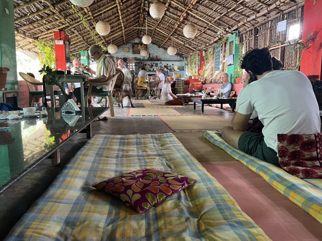 After Satsang, I drove to the SBI ATM near the Ashram and withdrew 10.000 rupees. I stopped for a coconut. Once again, in India, there is never enough little money. The coconut lady asked me to change 500 rupees, then I gave her 30 rupees for my coconut. I bought a packet of four Gillette Mach 3 razors. They are much cheaper in India than in Europe. I messaged Sarah and said we would meet at Shanti. I can’t remember having been here, but it’s a nice place.