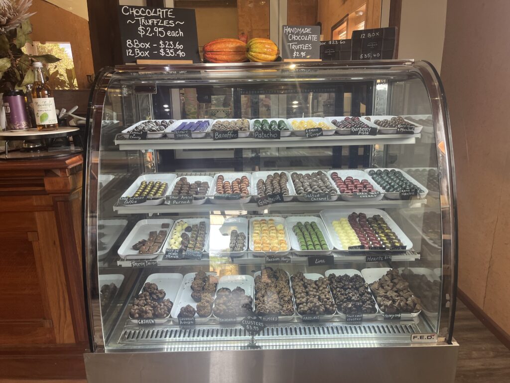 It was a good spot last night, the Munday Camp Ground in Augusta. The night was quiet. Andrew woke up from the crowing of a rooster. I didn’t hear that, but I needed to get out for a pee early morning. After packing and breakfast, we started towards Pemberton. The drive was through forests and Natural Parks. On the way, we saw a sign showing the Southern Forests Chocolate Company. We couldn’t resist stopping there. My old addiction to chocolate was back.