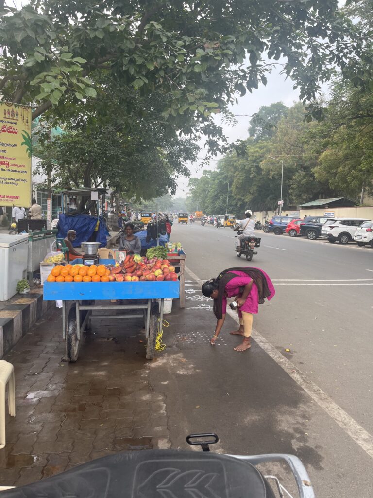 I went back to Chengam Road to withdraw some money from the SBI ATM. I spent some time back home before I left for lunch at Edwin’s. There would be a special North Indian buffet today. I already know quite a few people here. After Edwin’s Sarah, and I left to have a juice in Sarala’s Cafe. We were sitting there for a while with Cassandra and others. Cassandra, I met the first time. She is from San Francisco.