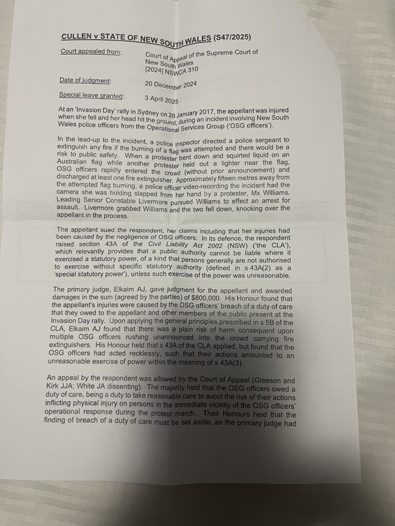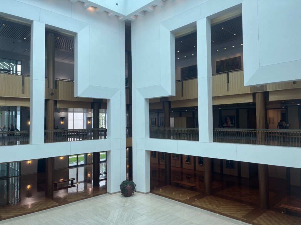 Another day in Canberra. The WiFi in the hotel still doesn’t work. We went to town again on bus R6. The internet for the bus also didn’t work, which means we couldn’t pay for the bus. We had breakfast in Coffers Cafe, where we had lunch yesterday. The High Court is on the other side, near the river. We entered the building, got checked, and entered the courtroom. It is tradition to bow your head when entering the room. We sat silently and listened to the lawyer and the seven judges. The case was Cullen v State of New South Wales.