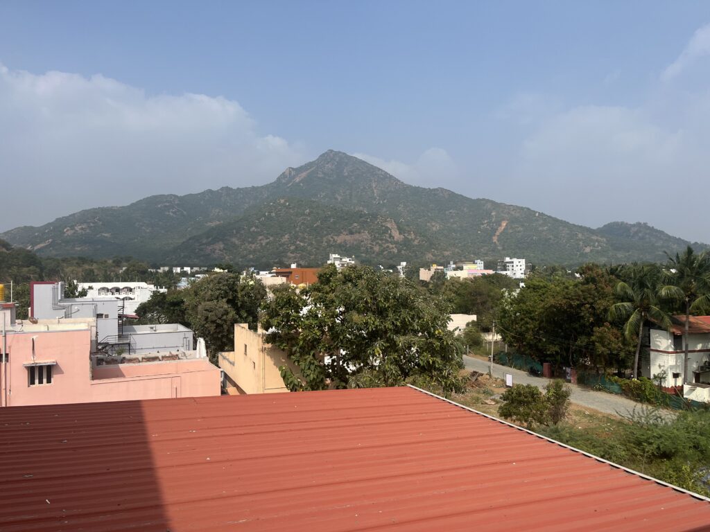 My original plan was to join Satsang with Ganga Maa, but I skipped that. When the washing was finished, I went up to the rooftop to dry the beddings. I packed all my stuff into my suitcase and backpack, just a few things here and there. I left to get petrol for Gopika’s scooter. The tank was nearly empty, so I put petrol in it for 420 Rupees. I had a Thali at Hotel Ananda Ramana before I drove back. While I was eating, Sampath sent me a message that I could pick up my scooter. He sent me photos of which scooter to take from his garage and where I could find the key.