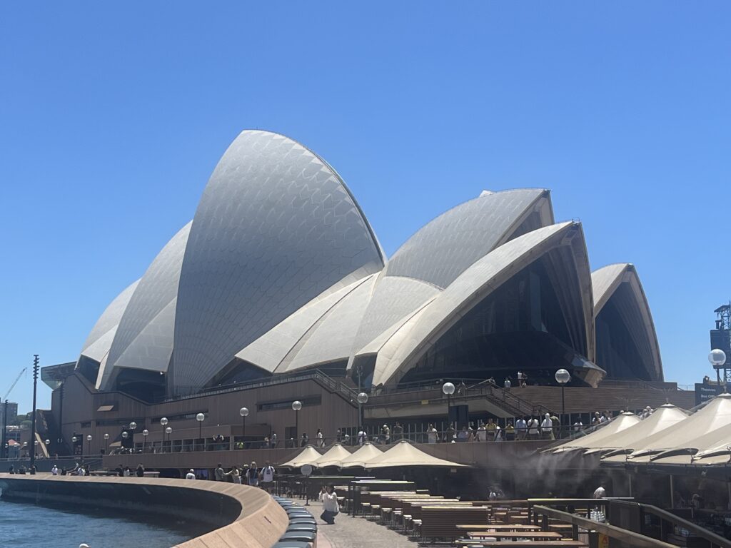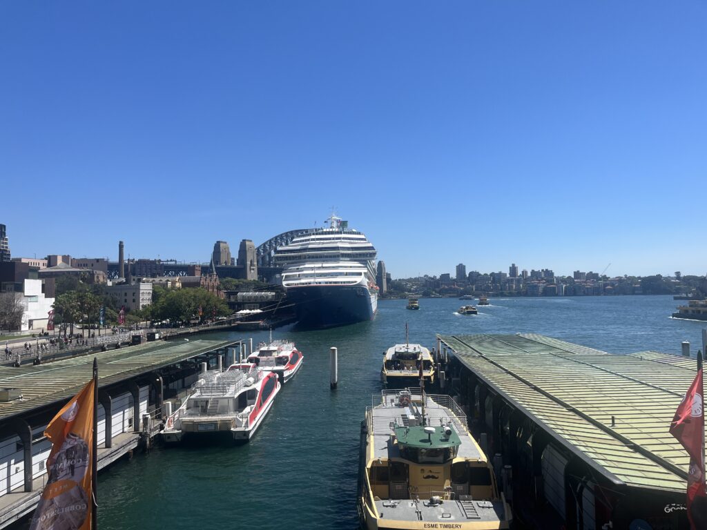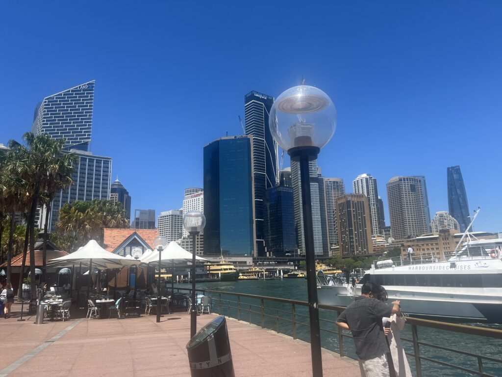 When we left the hotel this morning, I still wasn’t hungry at all. We took the M90 bus to Strathfield. From there, the T2 train to Circular Quai, which is closest to the famous Opera House. We sat down first in a nice Cafe for a coffee. This Cafe had a nice view of the small harbour.